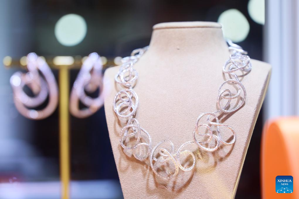 This photo shows an exhibit at the booth of Italian handmade jewelry brand Manzoni Gioielli at the Consumer Goods Exhibition area during the eighth China International Import Expo (CIIE) in east China's Shanghai, Nov. 9, 2025. (Xinhua/Wang Xiang)