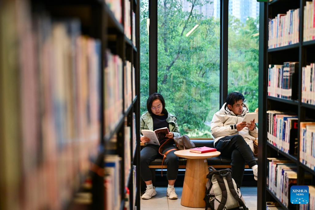 People read books at a public library in east China's Shanghai, Nov. 9, 2025. In recent years, Shanghai has focused on optimizing historical and cultural districts, developing urban cultural lifestyle areas, enriching citizens' cultural lives, and promoting the deep integration of culture and tourism. (Xinhua/Cai Xiangxin)