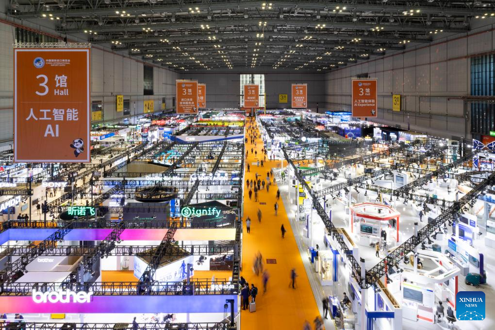 This photo shows the exhibition area of Intelligent Industry and Information Technology during the eighth China International Import Expo (CIIE) in east China's Shanghai, Nov. 10, 2025. The 8th CIIE concluded here on Monday. (Xinhua/Wang Xiang)