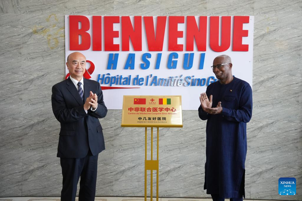 The signing and unveiling ceremony of the China-Africa Joint Medical Center was held at Sino-Guinean Friendship Hospital on Wednesday. (Xinhua/Zhang Jian)