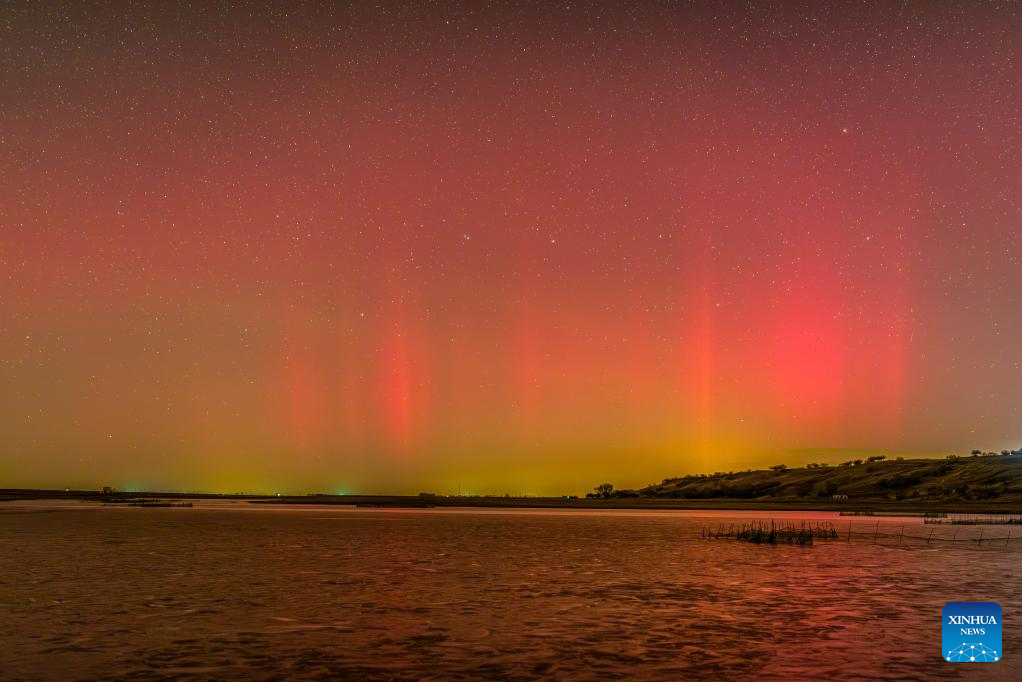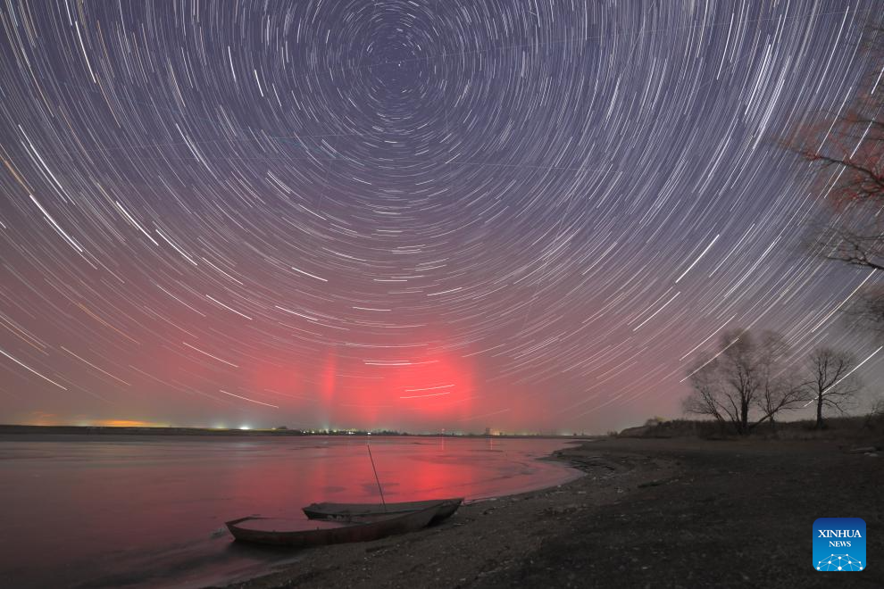 This photo taken on Nov. 13, 2025 shows the aurora seen on the bank of the Hulan River in Harbin, northeast China's Heilongjiang Province. (Photo by Li Xin/Xinhua)