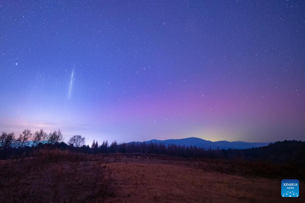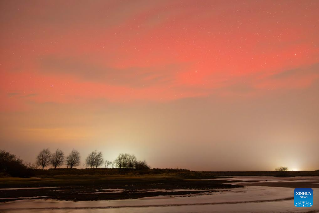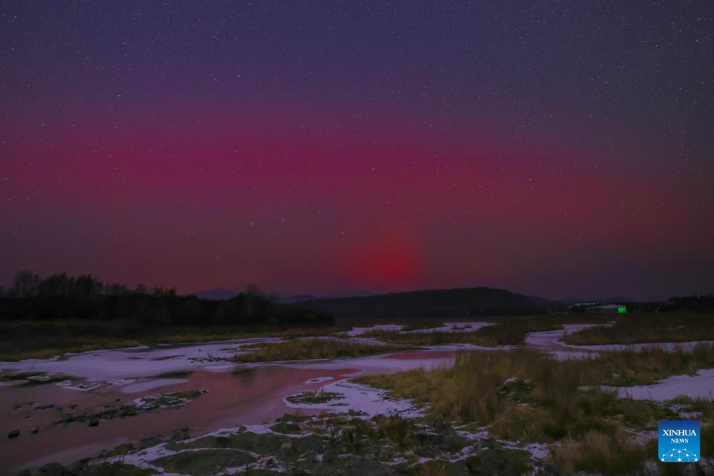 This photo taken on Nov. 12, 2025 shows the aurora seen in Yichun City, northeast China's Heilongjiang Province. (Photo by Li Jiaxing/Xinhua)