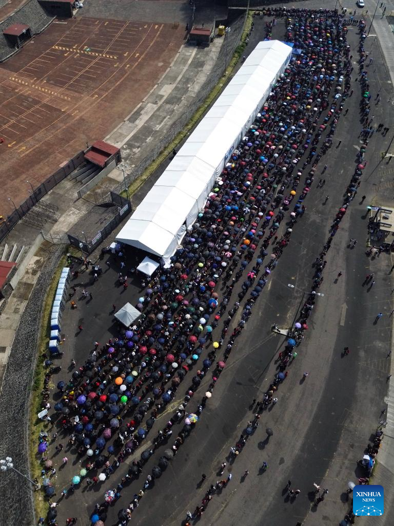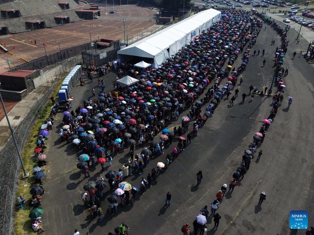 This aerial drone photo taken on Nov. 12, 2025 shows a vaccination center in Mexico City, capital of Mexico. Mexico City has set up a vaccination center offering influenza, COVID-19, pneumococcal and measles vaccines to the public as part of efforts to improve community immunization coverage during the winter season. (Photo by Francisco Canedo/Xinhua)