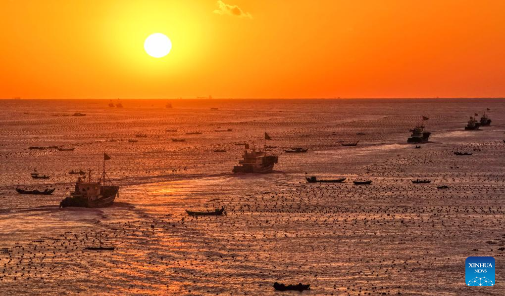 The output of marine aquatic products in Shandong reached 8.25 million tonnes with an added value exceeding 100 billion yuan (about 14.09 billion U.S. dollars) in 2024, topping among all regions at the provincial level in the country. (Photo by Wang Fudong/Xinhua)