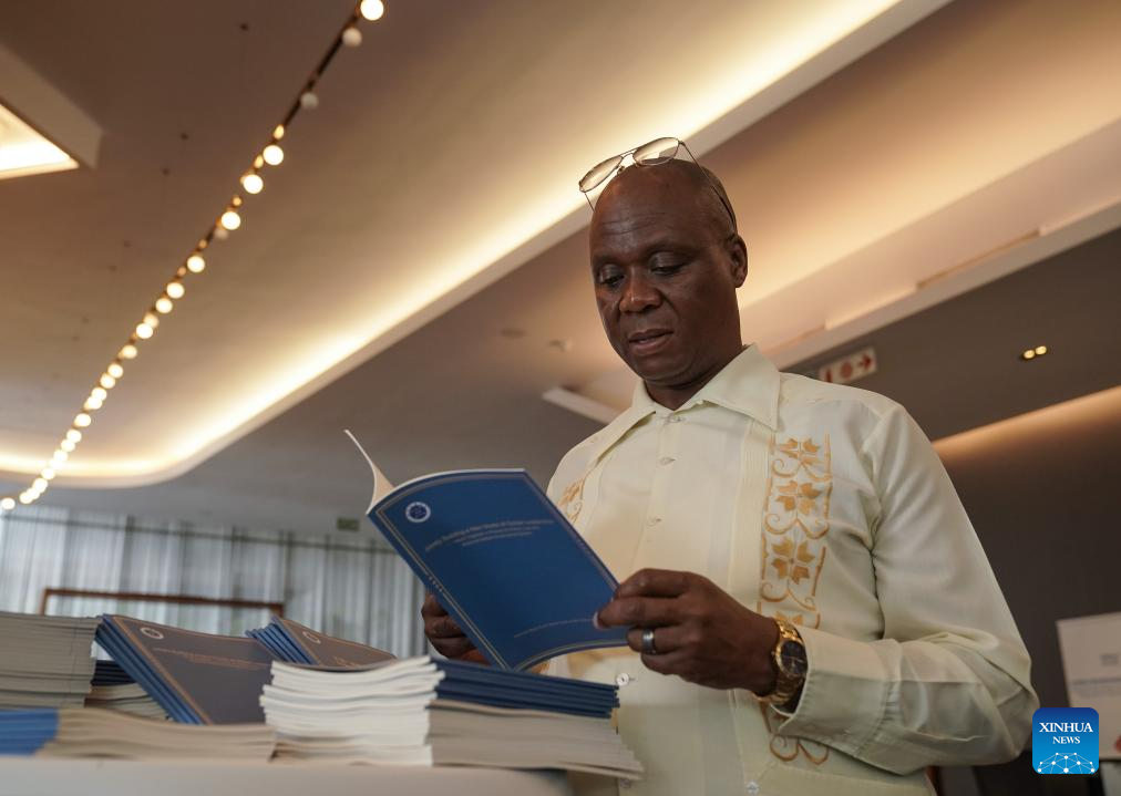 A delegate reads a report titled "Jointly Building a New Model of Global Leadership -- Work Together in Pursuit of a More Just and Rational Global Governance System" at the Global South Media and Think Tank Forum China-Africa Partnership Conference in Johannesburg, South Africa, Nov. 13, 2025. The Xinhua Institute, a think tank affiliated with Xinhua News Agency, released the report here on Thursday. (Xinhua/Han Xu)