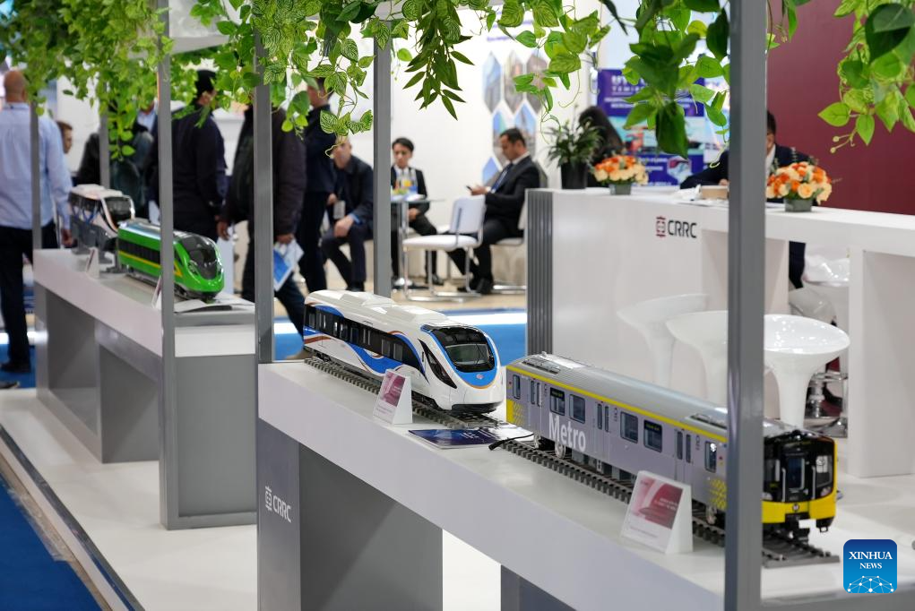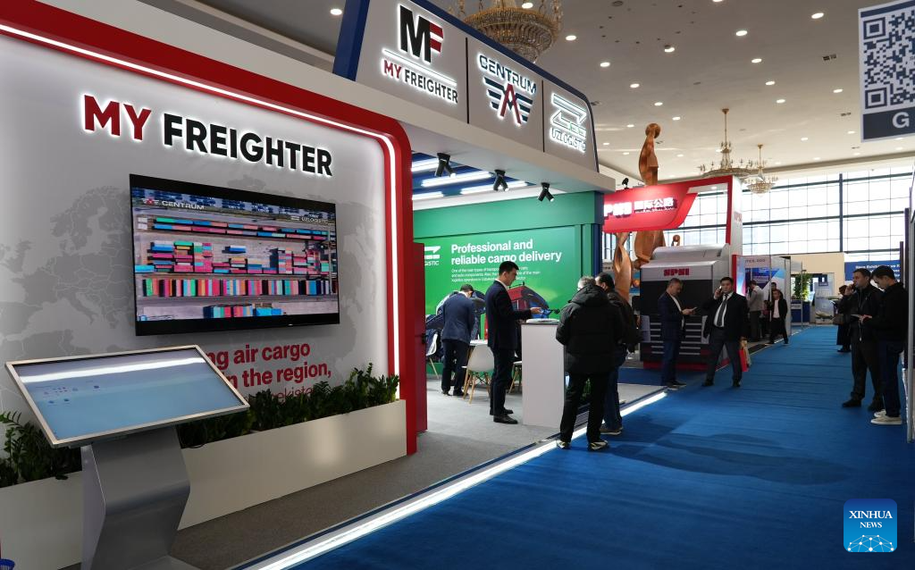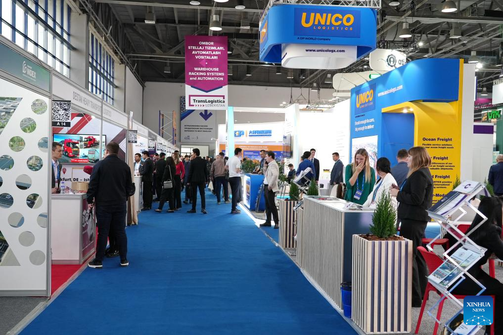 The 3-day exhibition kicked off here on Tuesday, showcasing advanced technologies and solutions in road and rail transportation, multimodal transport, air freight, logistics, and warehouse management. (Photo by Zafar Khalilov/Xinhua)
