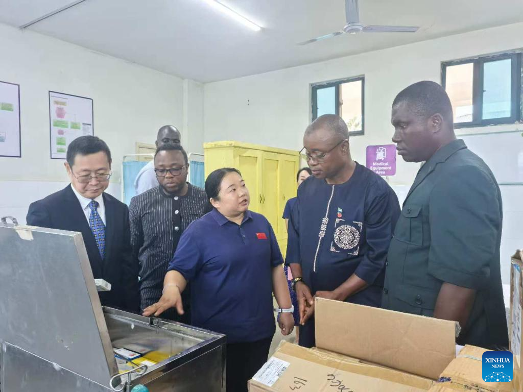 A launching ceremony is held for the Cardiac Intensive Care Unit at the Sierra Leone-China Friendship Hospital in Freetown, Sierra Leone, Nov. 12, 2025. The China-aided Cardiac Intensive Care Unit, the first of its kind in Sierra Leone, has officially launched at the Sierra Leone-China Friendship Hospital in Freetown, the capital.(The 26th batch of the Chinese medical team to Sierra Leone/Handout via Xinhua)