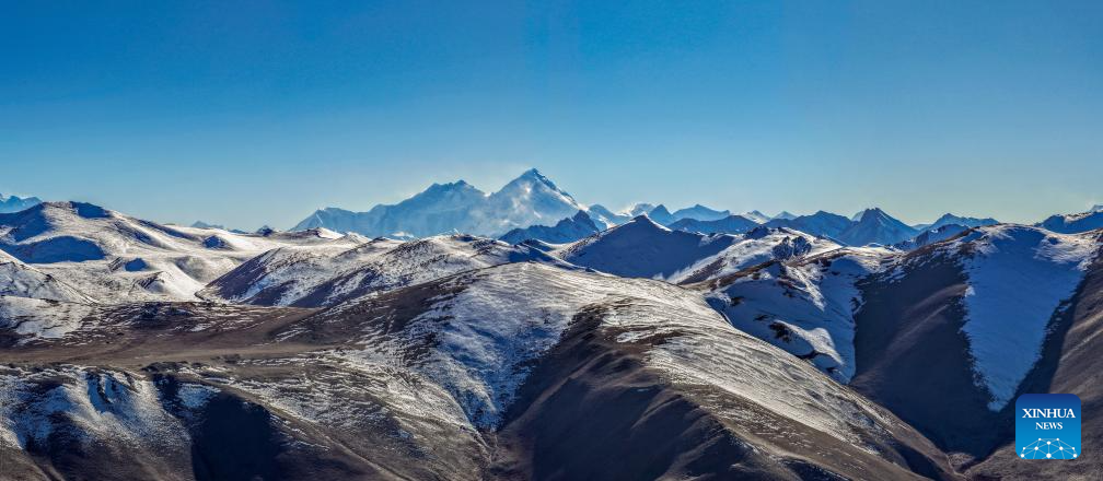 A drone photo taken on Nov. 12, 2025 shows a view of Mount Qomolangma in Tingri County of Xigaze, southwest China's Xizang Autonomous Region. (Xinhua/Li Jian)