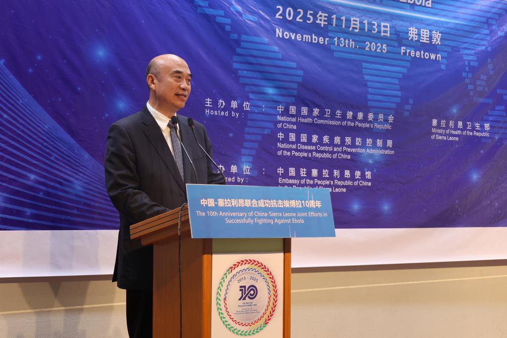 Chinese Vice Premier Liu Guozhong, also a member of the Political Bureau of the Communist Party of China (CPC) Central Committee, attends the 10th-anniversary commemorations of the China-Sierra Leone collaboration in successfully combating Ebola in Freetown, Sierra Leone, Nov. 13, 2025. Liu was on a visit to Sierra Leone from Wednesday to Friday at the West African nation's invitation. (Xinhua/Gao Jianfei)