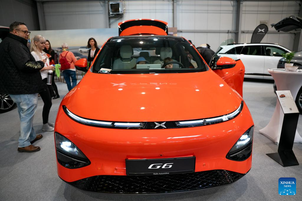 People visit the exhibition area of Xpeng at the 7th e-SALON in Prague, the Czech Republic, Nov. 14, 2025.