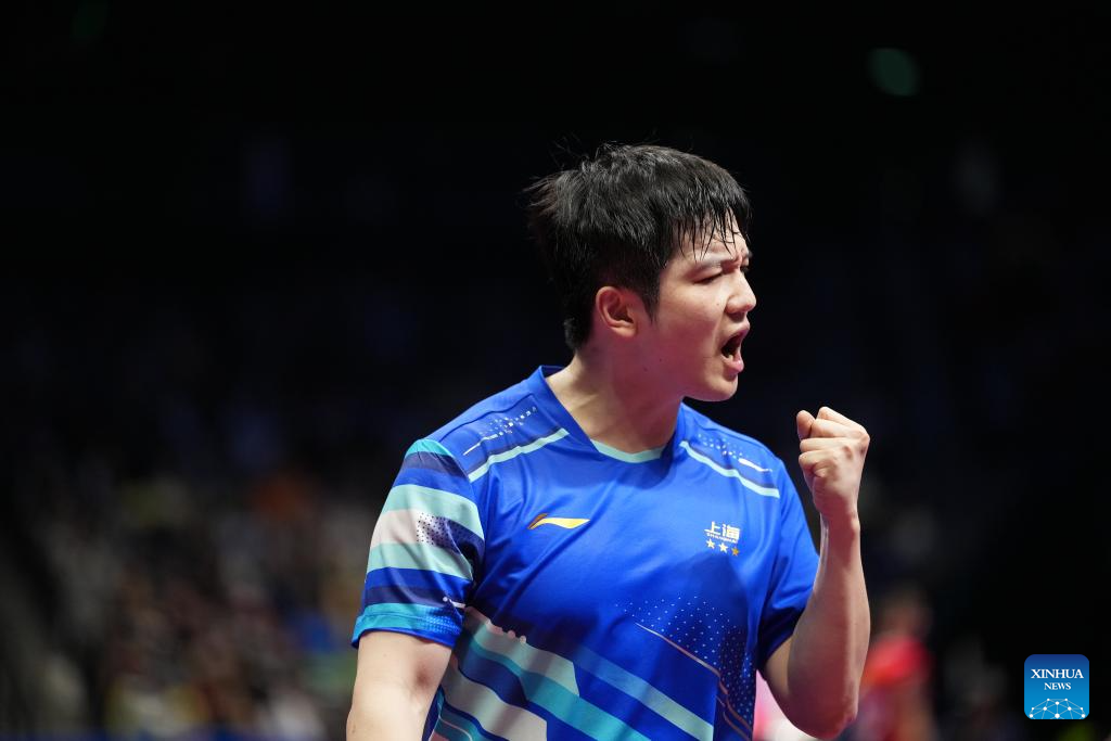 MACAO, Nov. 15 (Xinhua) -- In a much-anticipated clash, Shanghai's Fan Zhendong defeated Beijing's Wang Chuqin 4-2 in the table tennis men's singles semifinals of China's 15th National Games at Macao's Galaxy Arena on Saturday.
