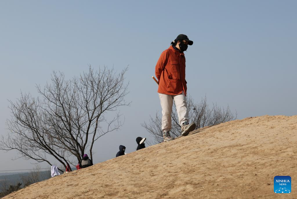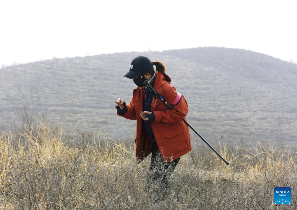 Yu Huaishi surveys at a Hongshan Culture site in Chaoyang City, northeast China's Liaoning Province, March 11, 2025. (Xinhua/Wu Qinghao)