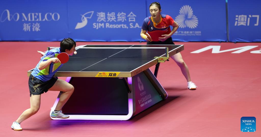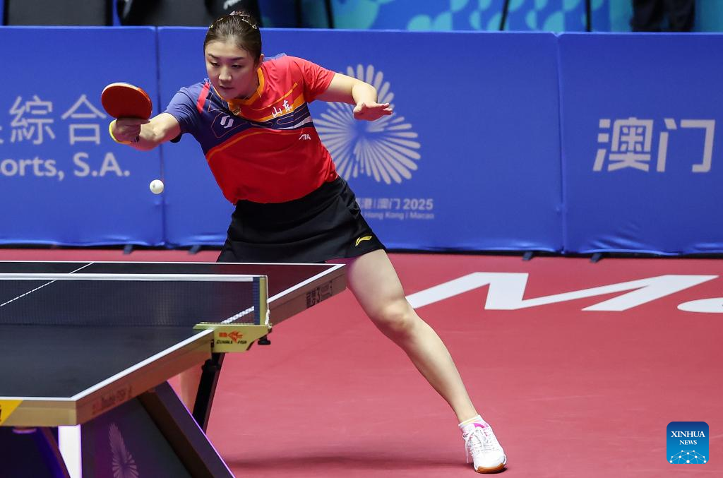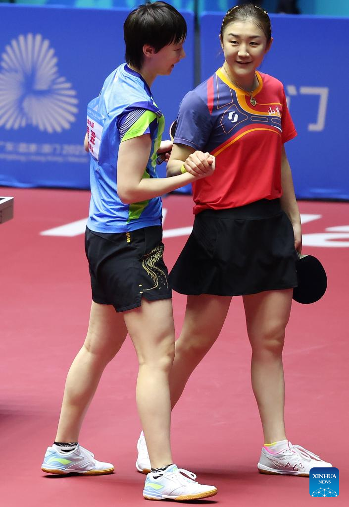 MACAO, Nov. 15 (Xinhua) -- Sun Yingsha and Wang Manyu will meet in the women's singles final at China's 15th National Games after winning their semifinal matches on Saturday at Macao's Galaxy Arena.