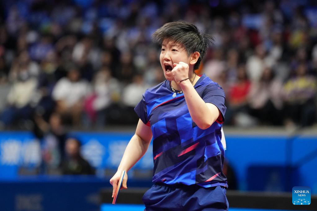 In the other semifinal, second seed Wang swept Shandong's Chen Meng 11-4, 12-10, 11-3, 11-9.