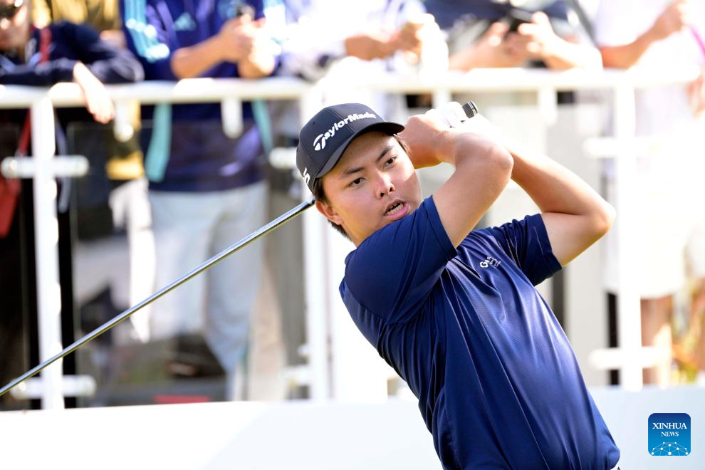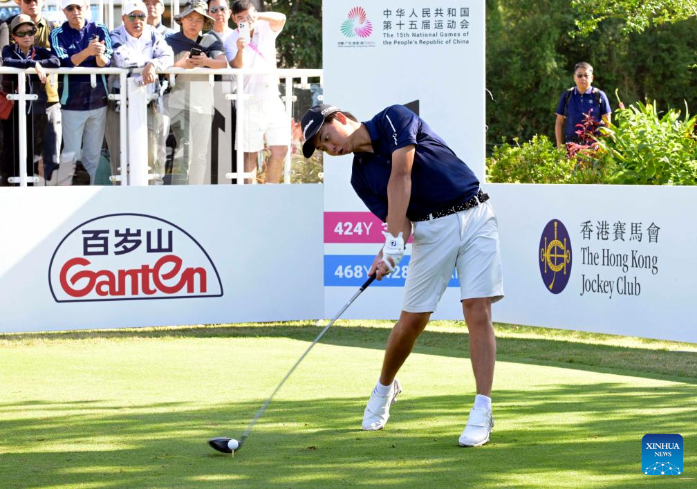 Kuang Yang of Zhejiang competes during the men's individual final of golf at China's 15th National Games in Hong Kong, south China, Nov. 16, 2025. (Xinhua/Lo Ping Fai)
