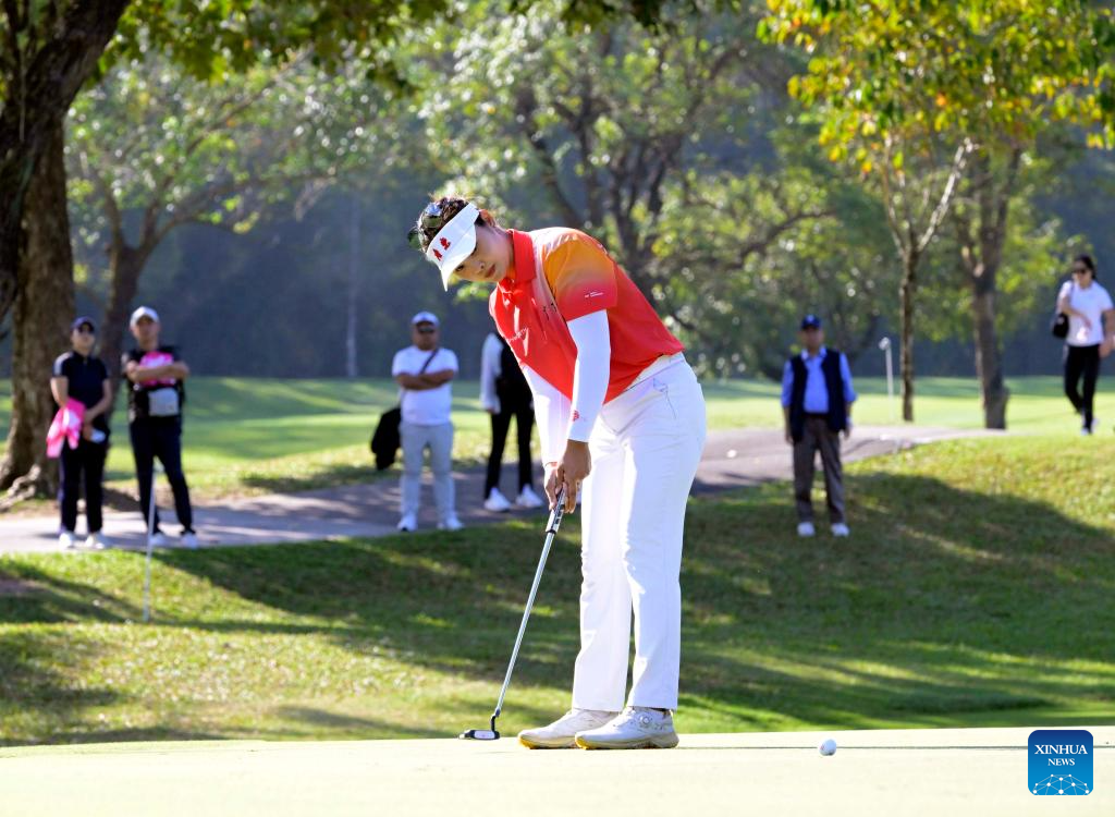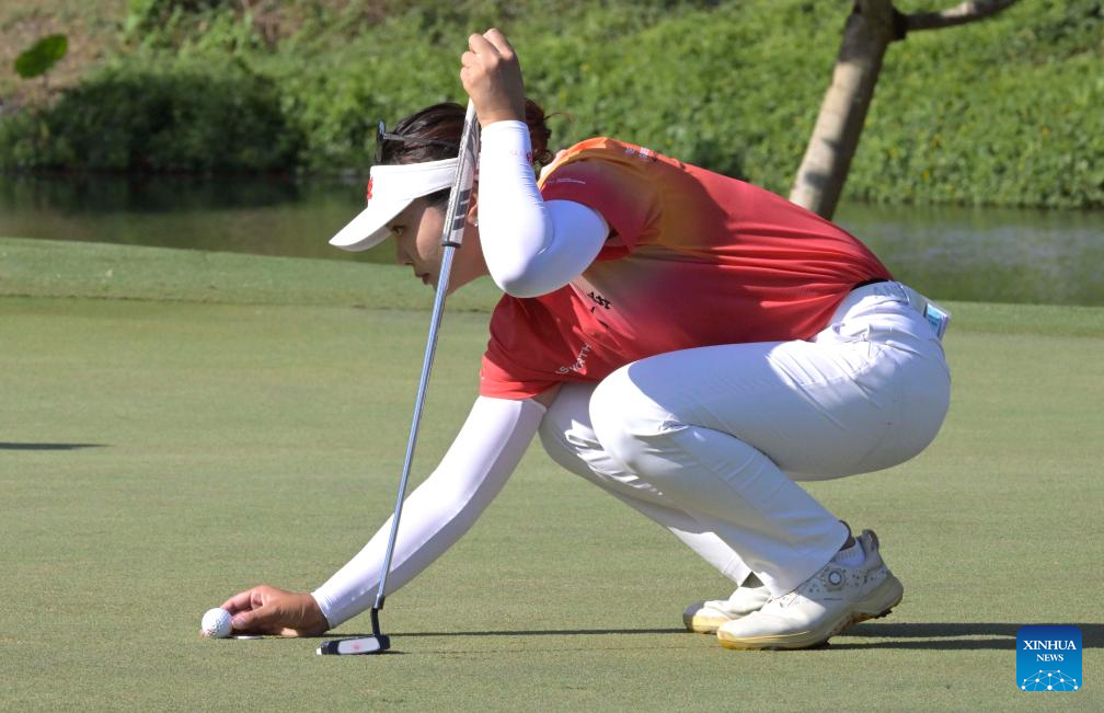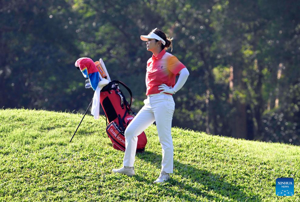 Zhang Weiwei of Guangdong is seen during the women's individual final of golf at China's 15th National Games in Hong Kong, south China, Nov. 16, 2025. (Xinhua/Lo Ping Fai)