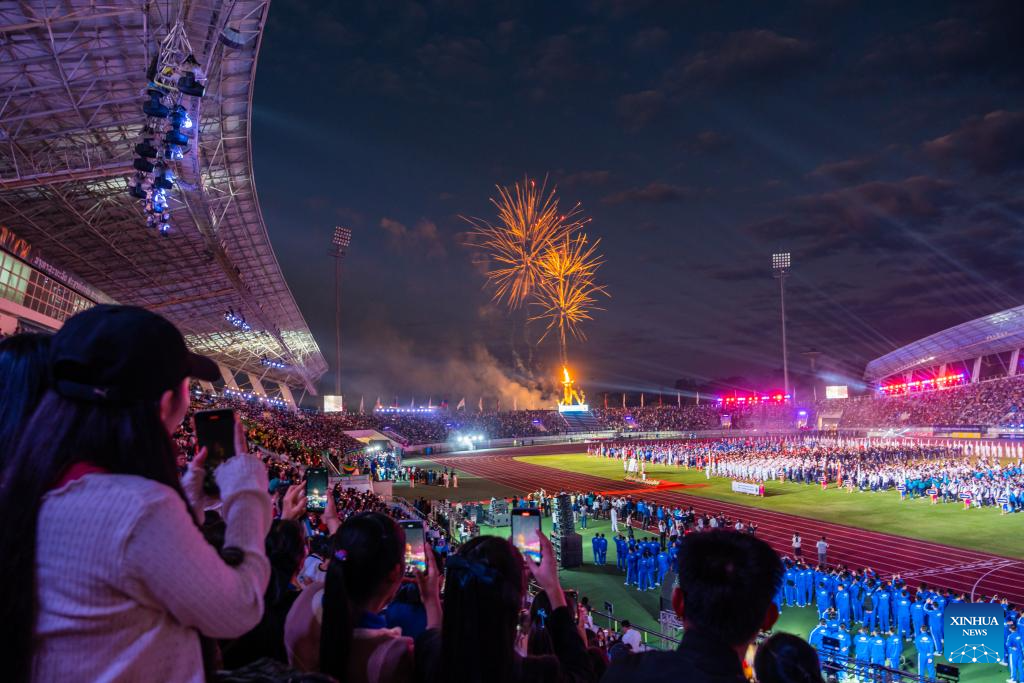VIENTIANE, Nov. 16 (Xinhua) -- The 12th National Games, Lao's largest sporting event, officially opened on Saturday with a grand ceremony at the National Stadium in Lao capital Vientiane.