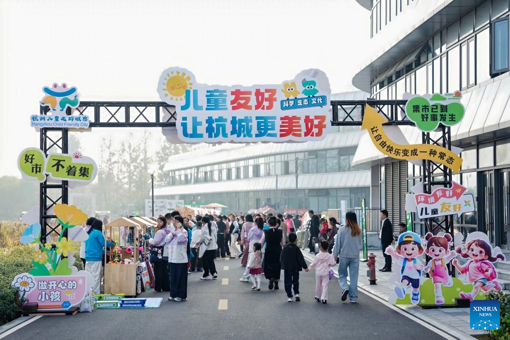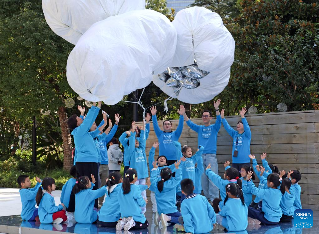 Children and their parents take part in an event of the World Children's Day in Hangzhou, east China's Zhejiang Province, on Nov. 15, 2025. The World Children's Day will fall on Nov. 20 this year. Various activities were held across the country to hail the arrival of the day. (Xinhua)