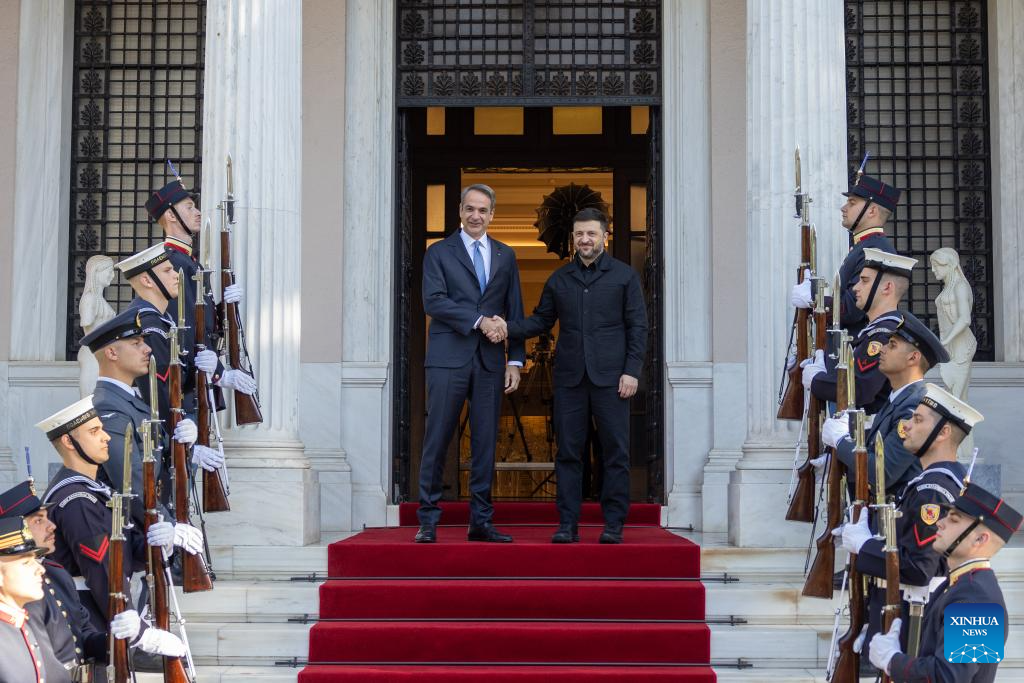 ATHENS, Nov. 16 (Xinhua) -- Ukrainian President Volodymyr Zelensky paid a brief visit to Greece on Sunday, during which the two countries signed a natural gas agreement.