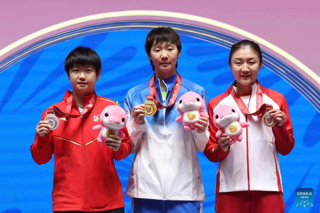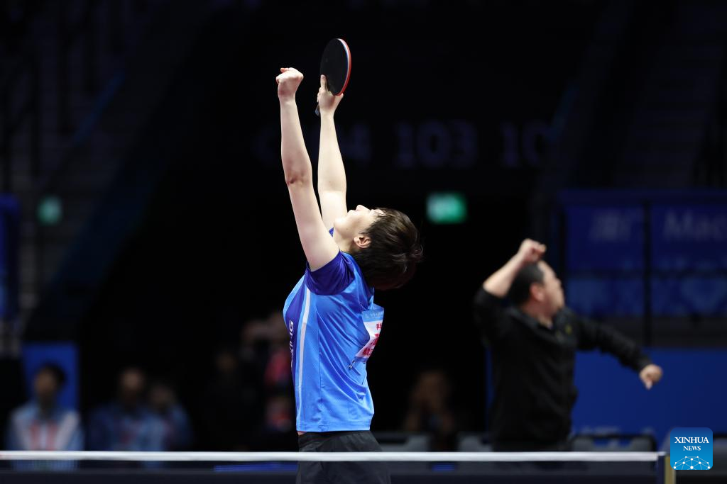 MACAO, China, Nov. 16 (Xinhua) -- Wang Manyu of Heilongjiang successfully defended her women's singles title at China's National Games, defeating Sun Yingsha of Hebei 4-2 in a thrilling final on Sunday.
