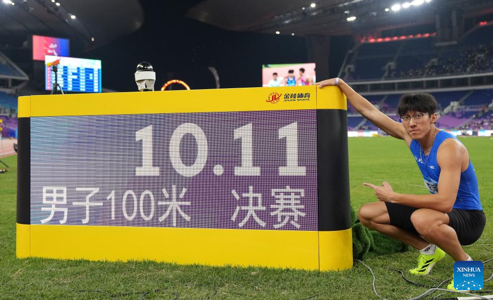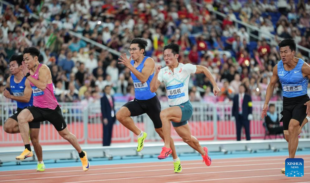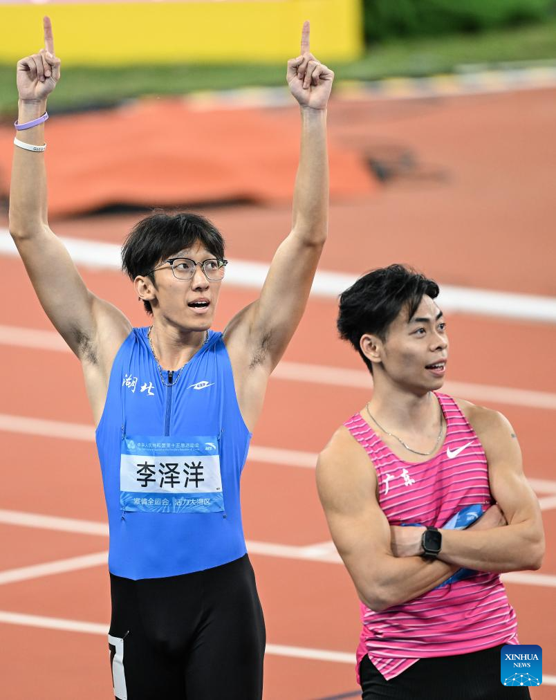 GUANGZHOU, Nov. 17 (Xinhua) -- Sprinters Li Zeyang of Hubei and Chen Yujie of Zhejiang stole the spotlight at China's 15th National Games on Monday, as Li clocked 10.11 seconds to win the men's 100 meters and 16-year-old Chen became the youngest women's champion in the event's history.