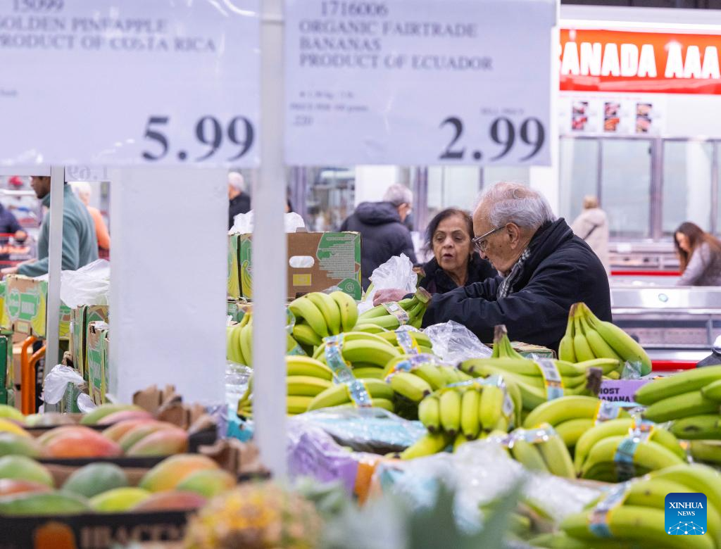 Customers shop for fruit at a Costco warehouse store in Toronto, Canada, Nov. 17, 2025. Canada's Consumer Price Index (CPI) rose 2.2 percent on a year-over-year basis in October, down from a 2.4 percent increase in September, Statistics Canada said Monday. (Photo by Zou Zheng/Xinhua)