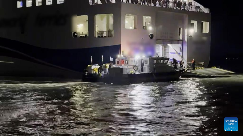 Members of the coast guard conduct rescue work after a passenger ferry ran aground in waters off western South Korea, Nov. 19, 2025. A passenger ferry carrying 267 people on Wednesday ran aground in waters off western South Korea, according to Yonhap news agency. (Xinhua)