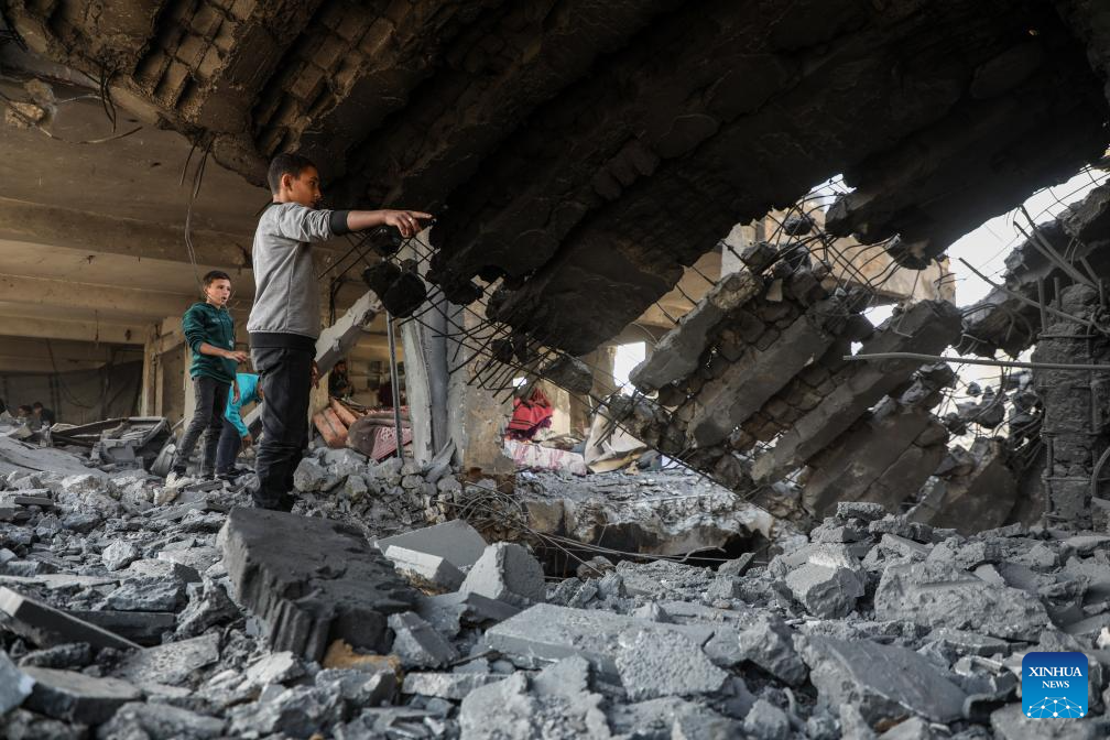 Palestinians inspect the destroyed houses after Israeli airstrikes in Al-Zeitoun neighborhood east of Gaza City, Nov. 20, 2025. (Photo by Rizek Abdeljawad/Xinhua)