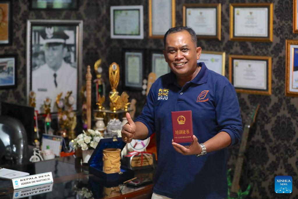Hendrik Dwi Martono, village chief of Purwosono and a participant of the 2023 village chief program, has already applied what he learned in China to his village governance practices in Indonesia. (Xinhua/Cen Yunpeng)