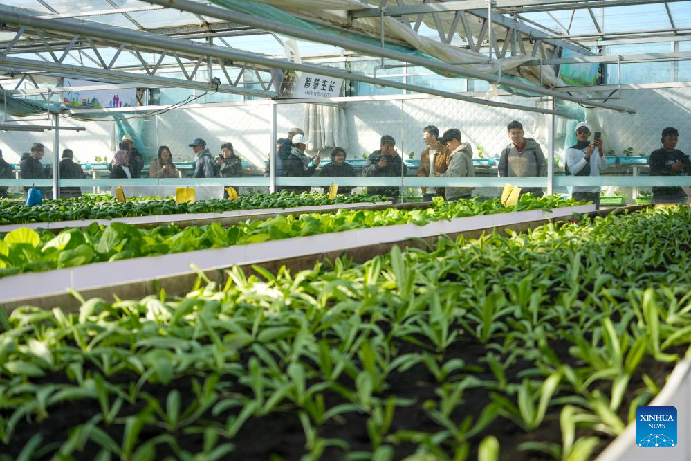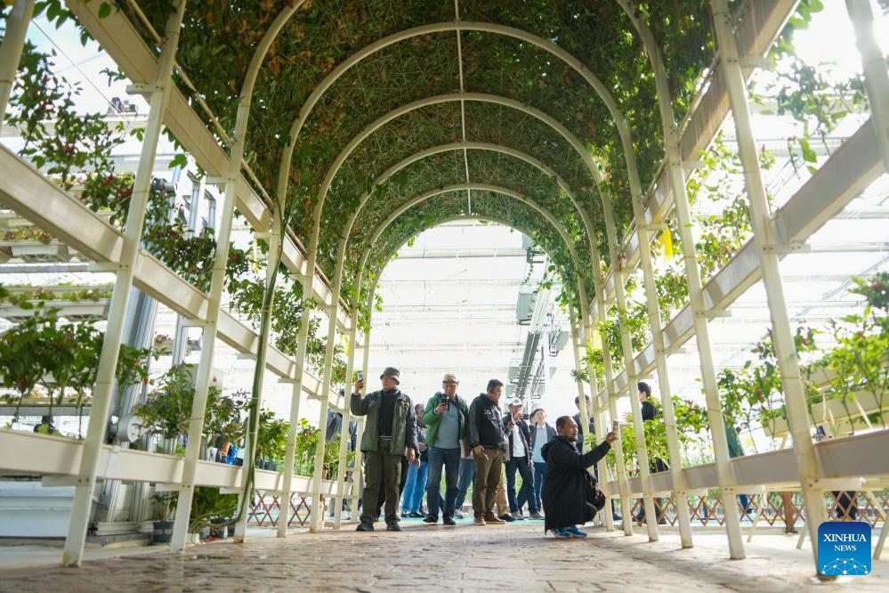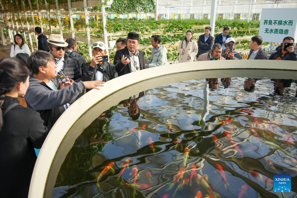 Members of the fifth session of the Indonesian Rural Cadre Training Program visit a tech-empowered agricultural park in Shouguang City, east China's Shandong Province, Nov. 2, 2025. (Xinhua/Xu Suhui)