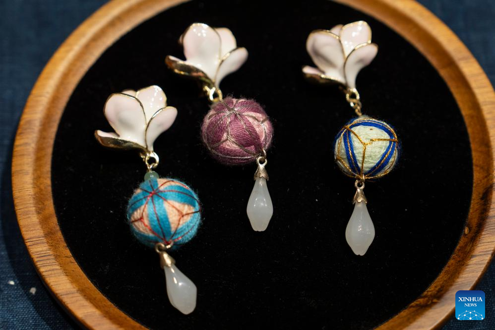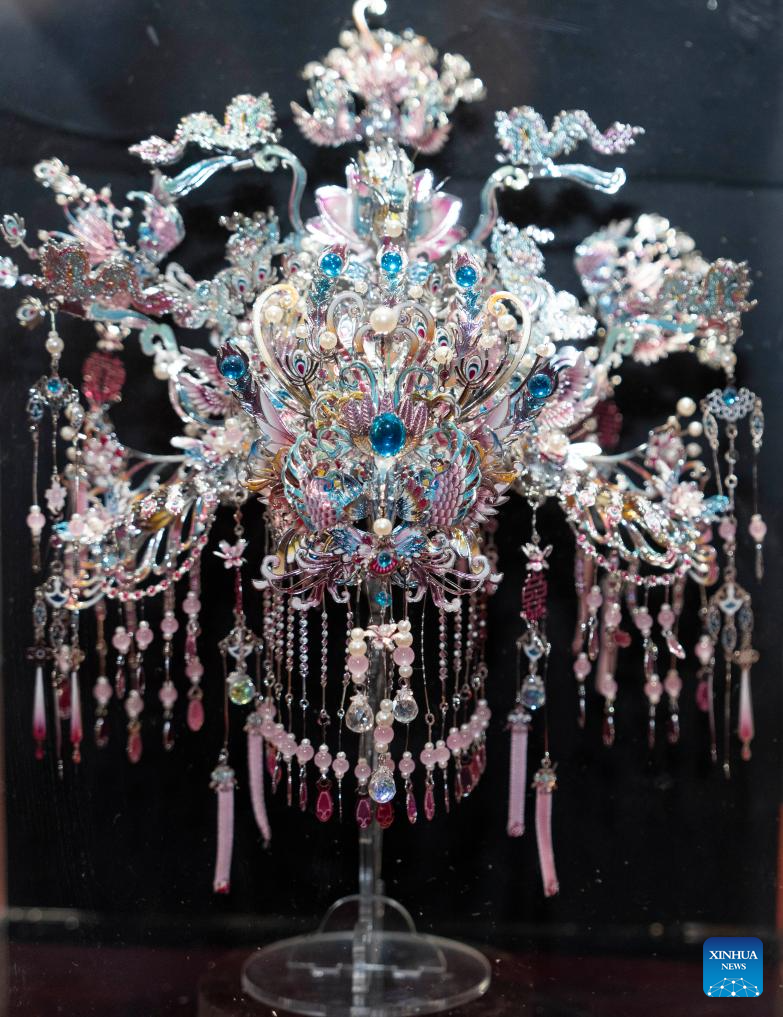 This photo taken on Nov. 21, 2025 shows a phoenix coronet at an exhibition held at the Sensory Experience Gallery of the Palace Museum in Beijing, capital of China. Featuring artworks created by disabled artists from Shanghai, the exhibition kicked off here on Friday. Under the guidance of inheritors of intangible cultural heritages, these artists infused their love for life and reverence for culture into their works. (Xinhua/Cai Yang)