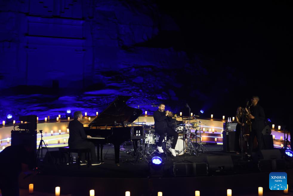 Musicians perform at the Hegra heritage site in AlUla, Saudi Arabia, Nov. 20, 2025.