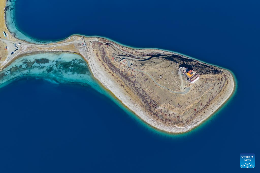 An aerial drone photo taken on Nov. 20, 2025 shows the scenery of the Yamzbog Yumco Lake in southwest China's Xizang Autonomous Region. (Xinhua/Jiang Fan)