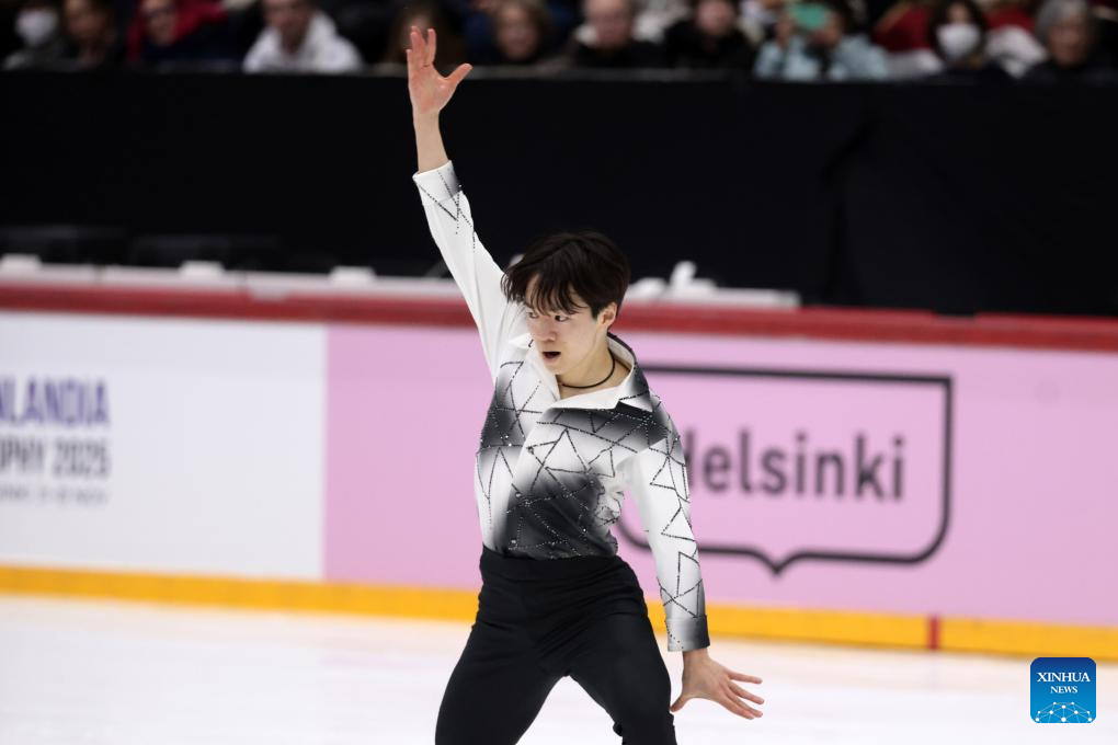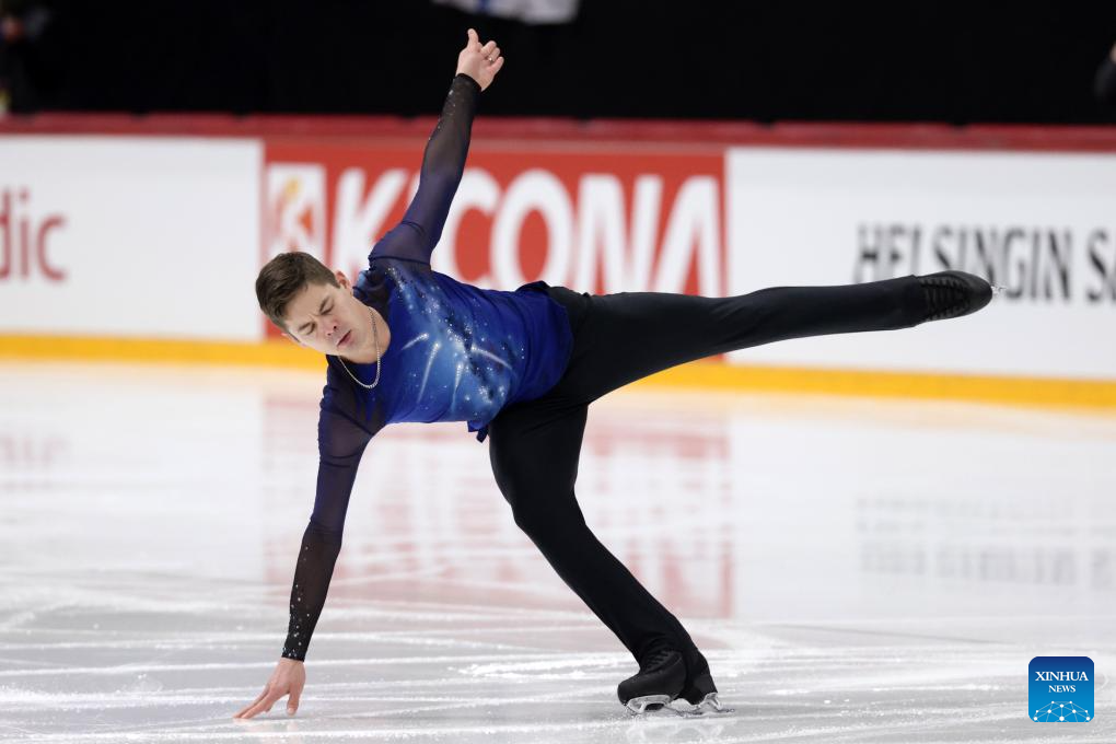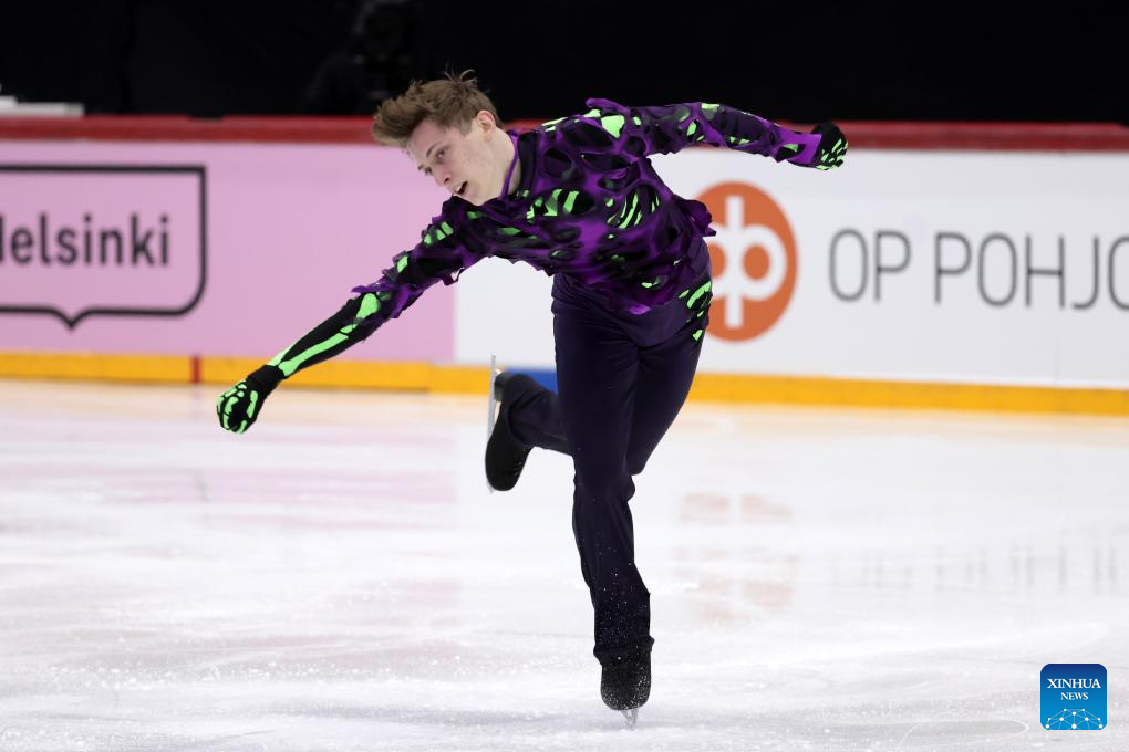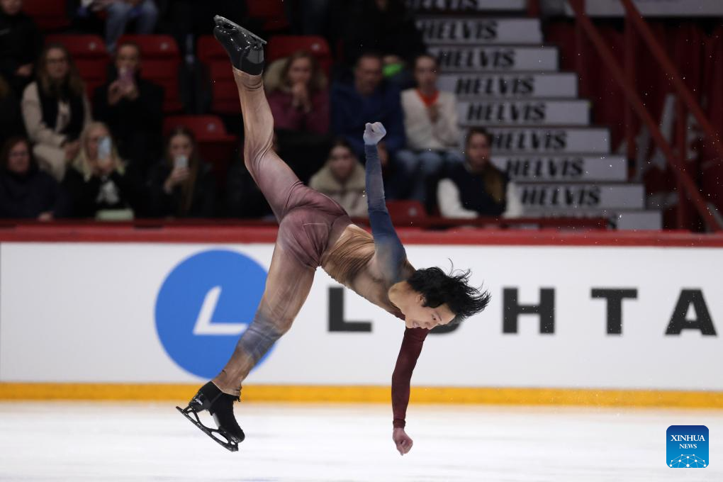 Valtter Virtanen of Finland performs during the men's short program at ISU Figure Skating Grand Prix 2025 in Helsinki, Finland, Nov. 21, 2025 (Photo by Matti Matikainen/Xinhua)