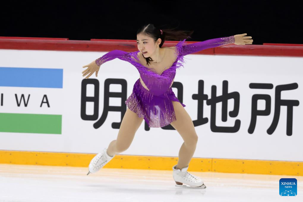 Chiba Mone of Japan performs during the women's short program at ISU Figure Skating Grand Prix 2025 in Helsinki, Finland, Nov. 21, 2025. (Photo by Matti Matikainen/Xinhua)