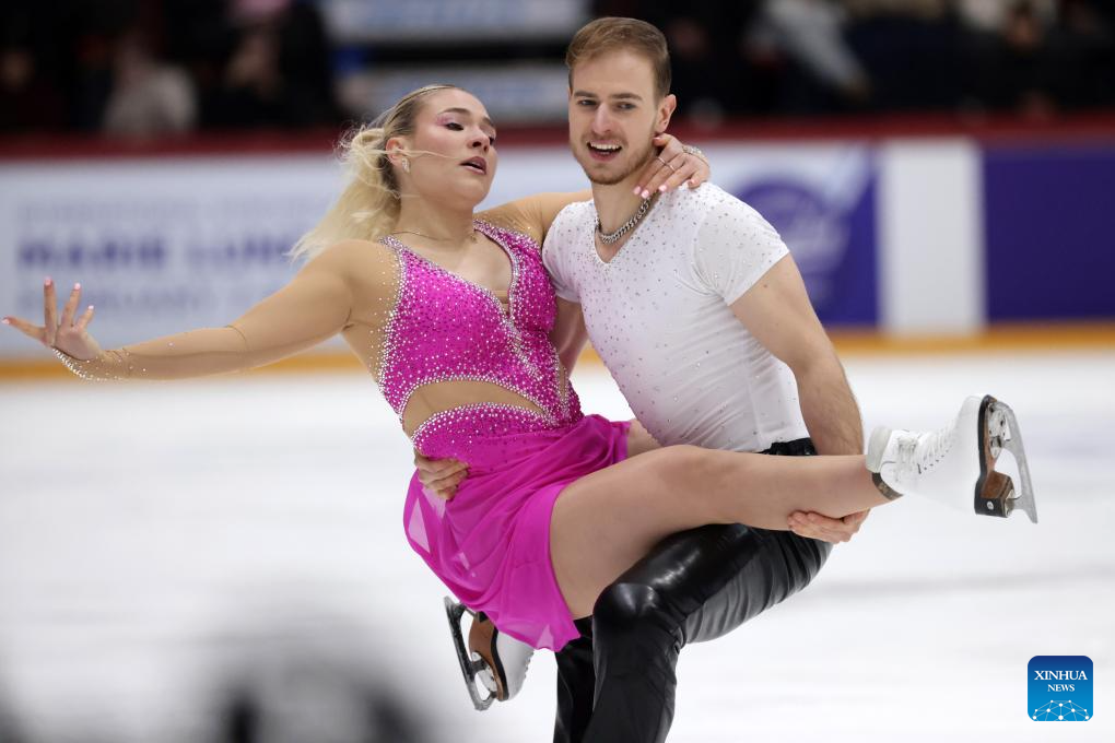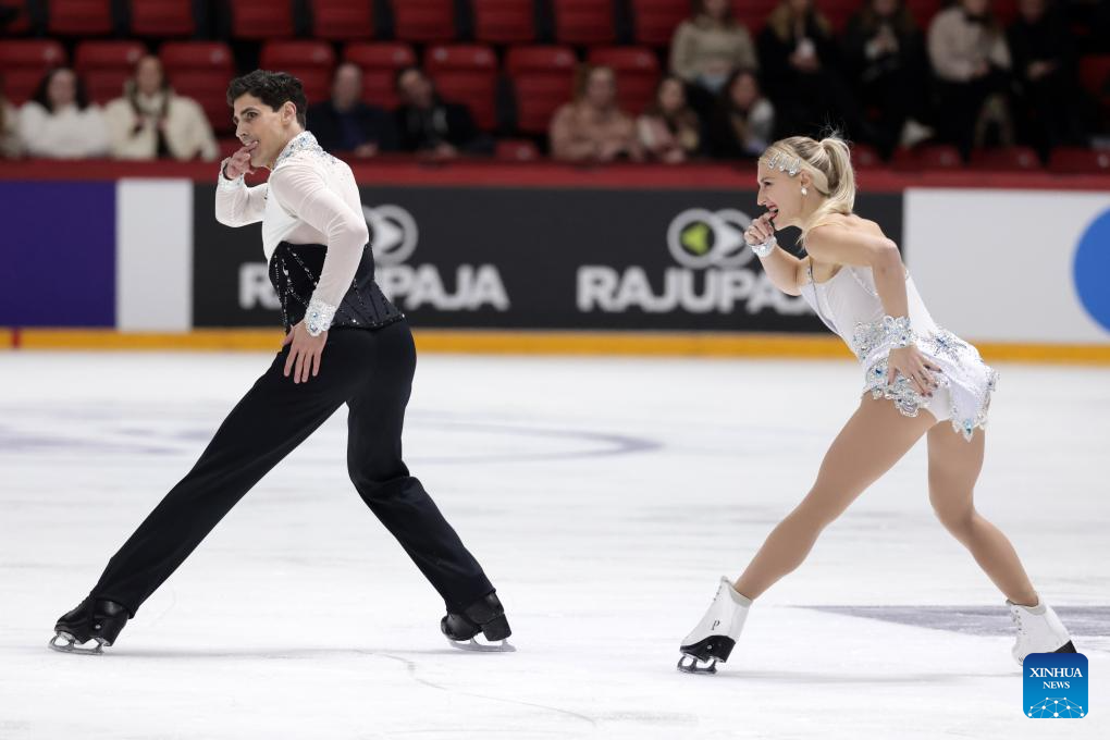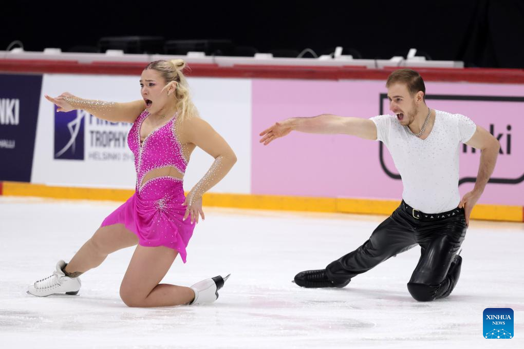 Natalie Taschlerova (L)/Filip Taschler of the Czech Republic perform during the ice dance rhythm dance at ISU Figure Skating Grand Prix 2025 in Helsinki, Finland, Nov. 21, 2025. (Photo by Matti Matikainen/Xinhua)