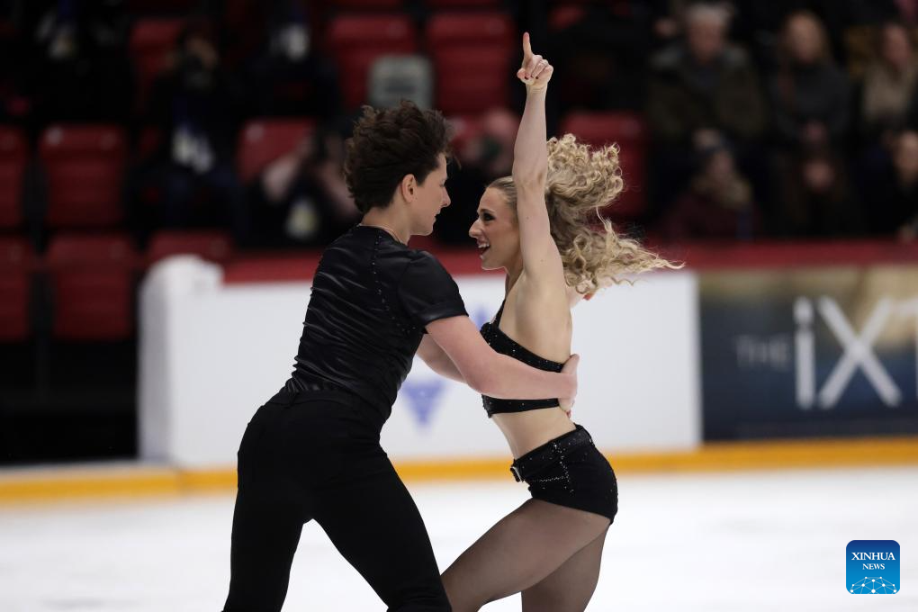 Piper Gilles (R)/Paul Poirier of Canada perform during the ice dance rhythm dance at ISU Figure Skating Grand Prix 2025 in Helsinki, Finland, Nov. 21, 2025. (Photo by Matti Matikainen/Xinhua)