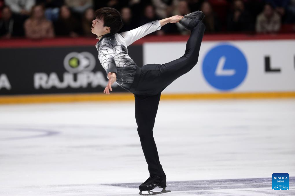 Kagiyama Yuma of Japan performs during the men's short program at ISU Figure Skating Grand Prix 2025 in Helsinki, Finland, Nov. 21, 2025 (Photo by Matti Matikainen/Xinhua)