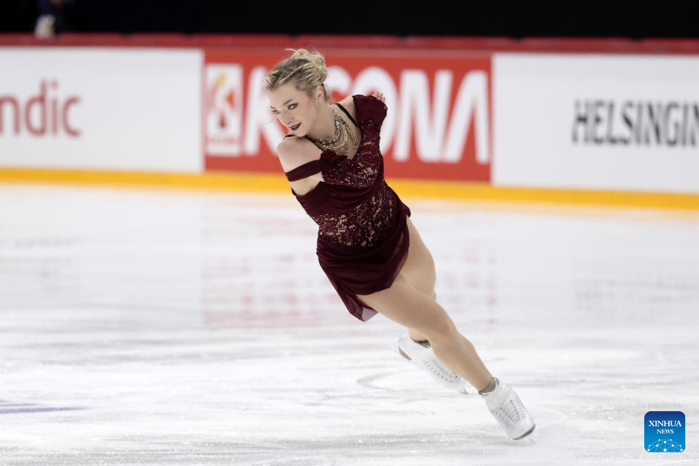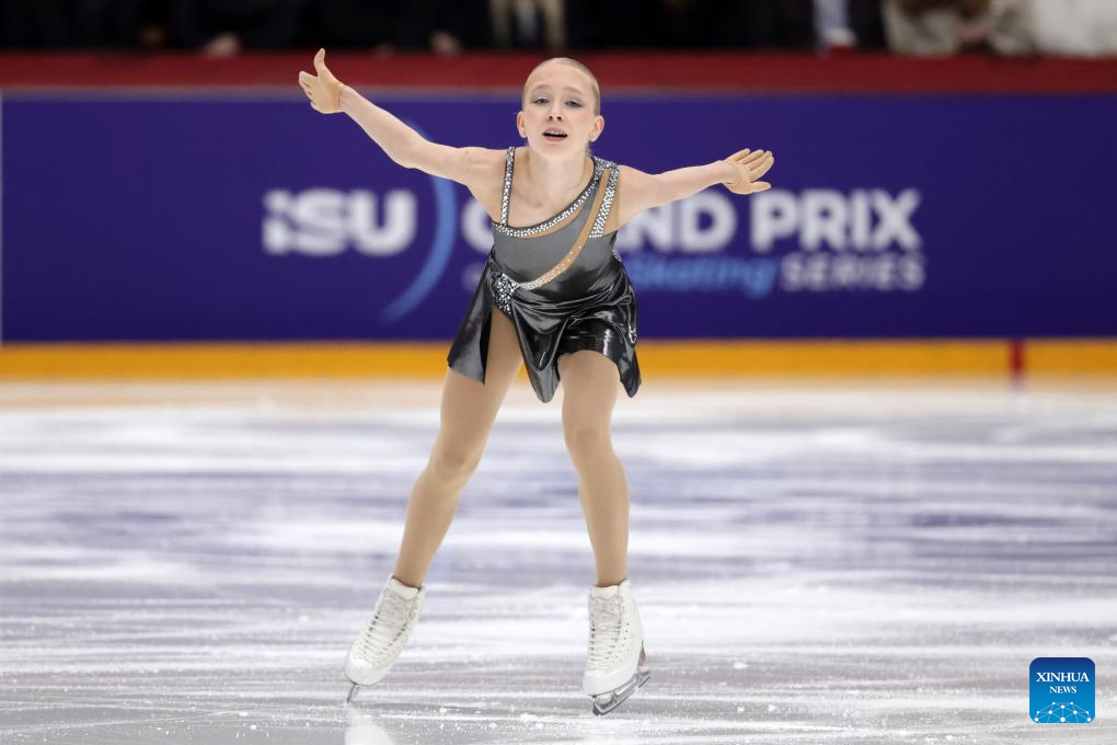 Madeline Schizas of Canada performs during the women's short program at ISU Figure Skating Grand Prix 2025 in Helsinki, Finland, Nov. 21, 2025. (Photo by Matti Matikainen/Xinhua)