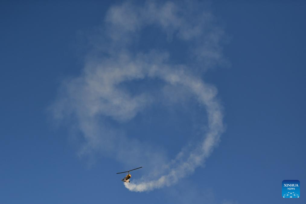This photo taken on Nov. 21, 2025 shows an air show during the 2025 Hunan International General Aviation and Low Altitude Economy Industry Expo at the Lusong Airport of Zhuzhou City, central China's Hunan Province. The expo comprises a static exhibition at the Changsha International Convention and Exhibition Center in Changsha and an air show at the Lusong Airport of Zhuzhou City, both in central China's Hunan Province. (Xinhua/Chen Zhenhai)