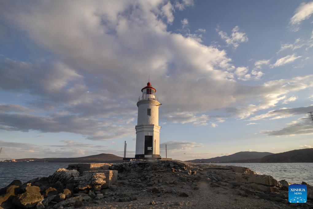This photo taken on Nov. 21, 2025 shows a sunset view of the Tokarevsky Lighthouse in Vladivostok, Russia. As one of Vladivostok's landmarks, the lighthouse was put into use in 1913 and remains in operation today. (Photo by Andrey Matveenko/Xinhua)