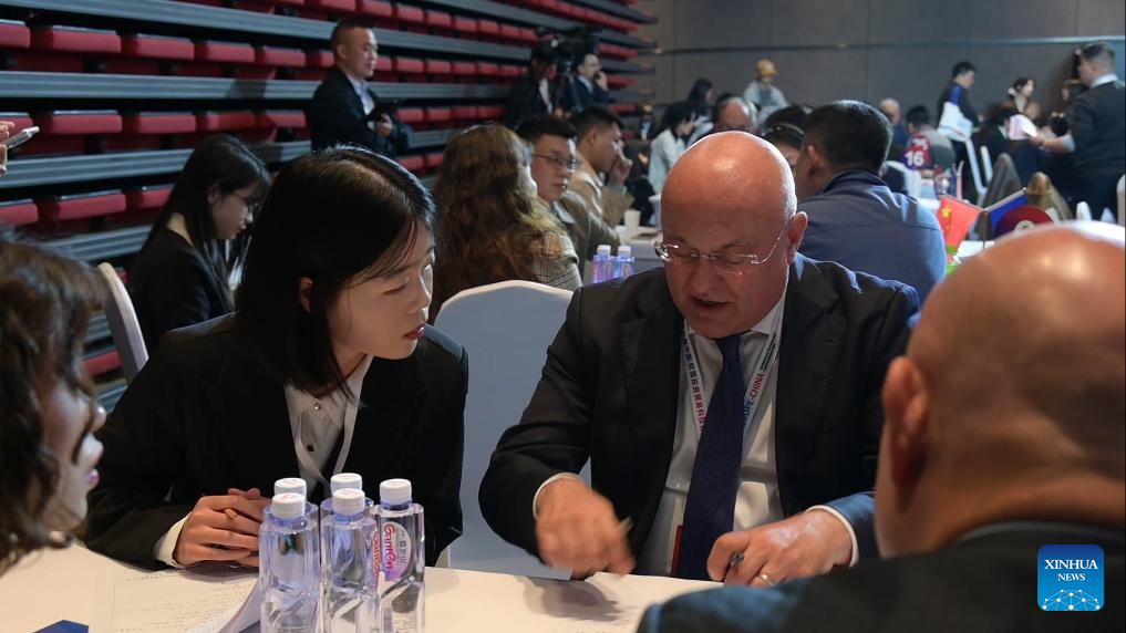 Participants attend the Europe-China B2B Matchmaking Meeting during the 18th Europe-China Business & Technology Cooperation Fair in Chengdu, southwest China's Sichuan Province, Nov. 20, 2025. (Photo by Han Jiayi/Xinhua)