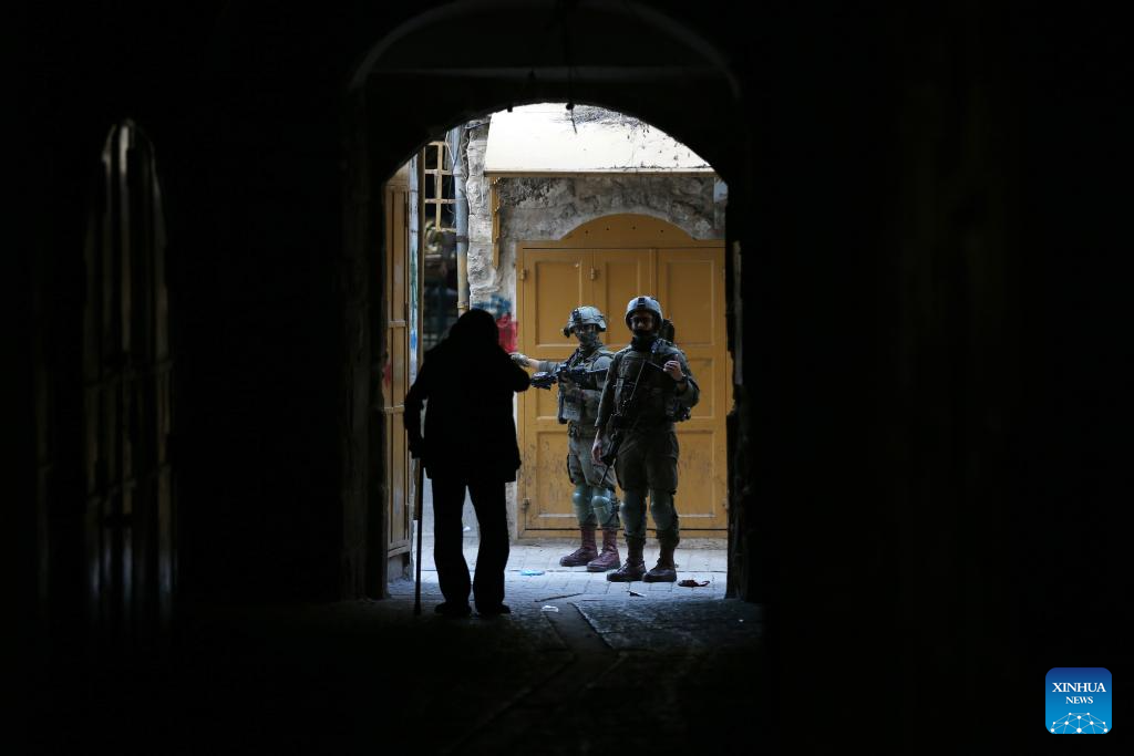 Members of Israeli forces secure the streets for Israeli settlers in the Old City of Hebron in the southern West Bank on Nov. 22, 2025. (Photo by Mamoun Wazwaz/Xinhua)