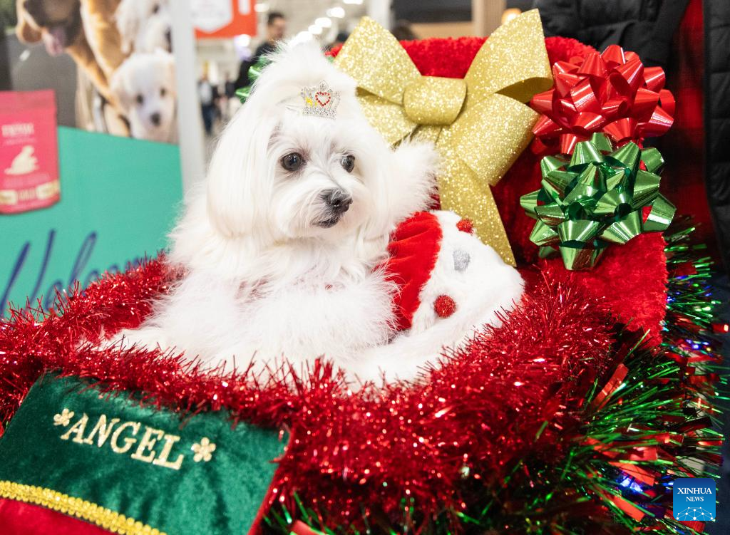 Dressed-up pet dogs are seen at the 2025 Christmas Canadian Pet Expo in Mississauga, Ontario, Canada, on Nov. 22, 2025.