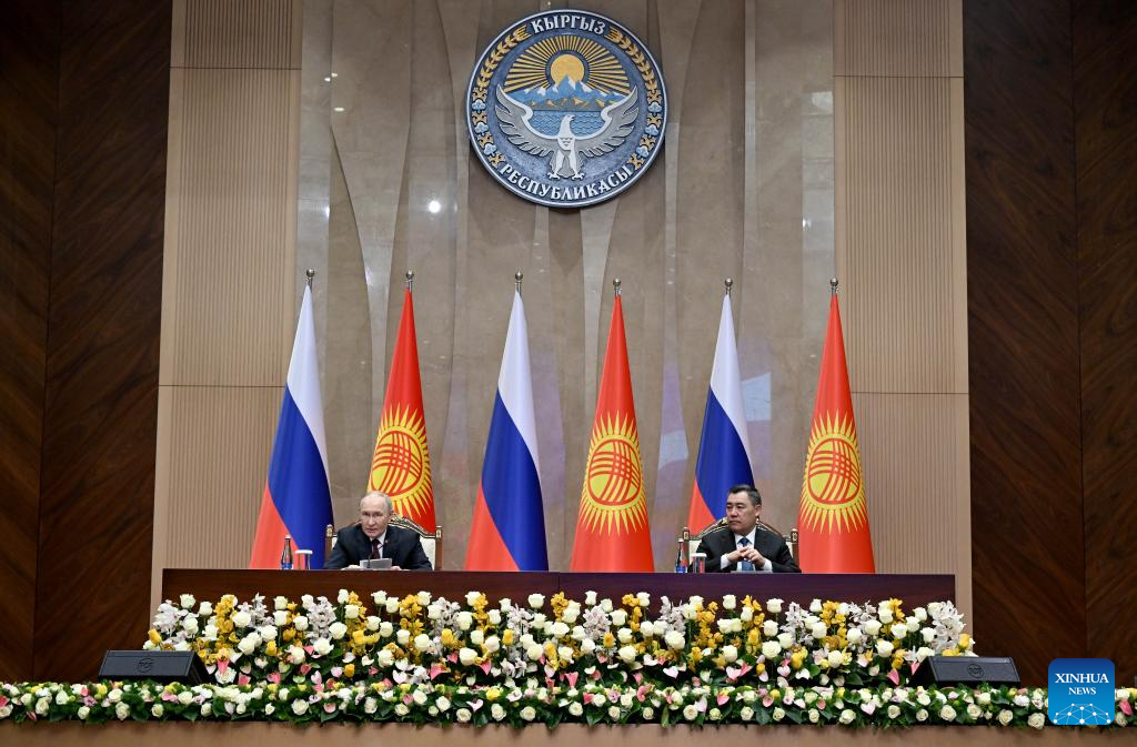 BISHKEK, Nov. 26 (Xinhua) -- Kyrgyz President Sadyr Japarov and Russian President Vladimir Putin held talks here on Wednesday, after which both leaders issued statements highlighting cooperation in trade and investment.