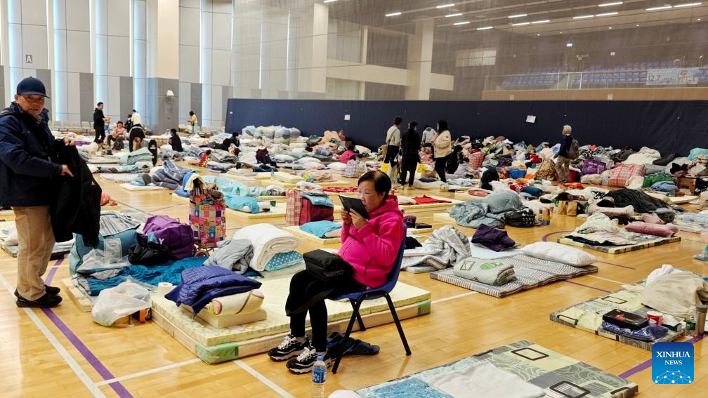 Citizens affected by the fire are resettled in a gym in Tai Po of Hong Kong, south China, Nov. 27, 2025. Three men have been arrested for suspected manslaughter in a fire that broke out in Wang Fuk Court, a residential area in Tai Po of Hong Kong, on Wednesday afternoon, the Hong Kong Police Force said at a press briefing on Thursday.