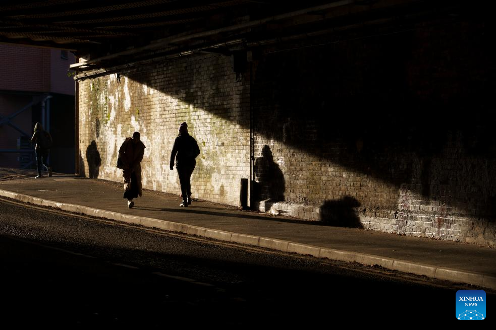 People walk under a bridge in Manchester, Britain, Nov. 26, 2025. British Chancellor of the Exchequer Rachel Reeves unveiled the 2025 Budget on Wednesday, pledging that the government will neither return the country to austerity nor allow public spending and borrowing to spiral, while vowing to ease pressures on the cost of living.