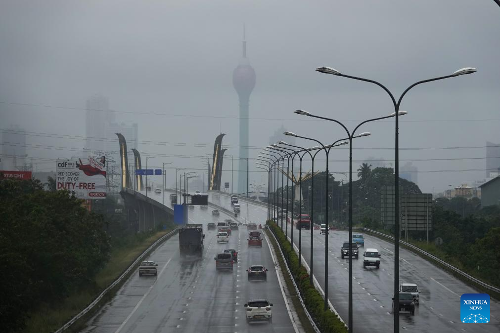 This photo taken on Nov. 27, 2025 shows a city view of Colombo, Sri Lanka during cyclone "Ditwah." Sri Lanka is confronting one of its most severe weather disasters in recent years, as days of heavy rainfall and multiple landslides have killed 31 people, left 14 missing, and displaced thousands across the island, the Disaster Management Center (DMC) said on Thursday.