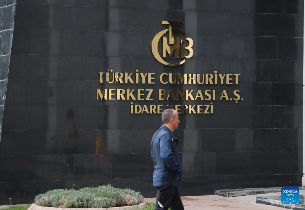 A man walks past Türkiye's central bank in Ankara, Türkiye, Nov. 27, 2025. (Mustafa Kaya/Handout via Xinhua)
