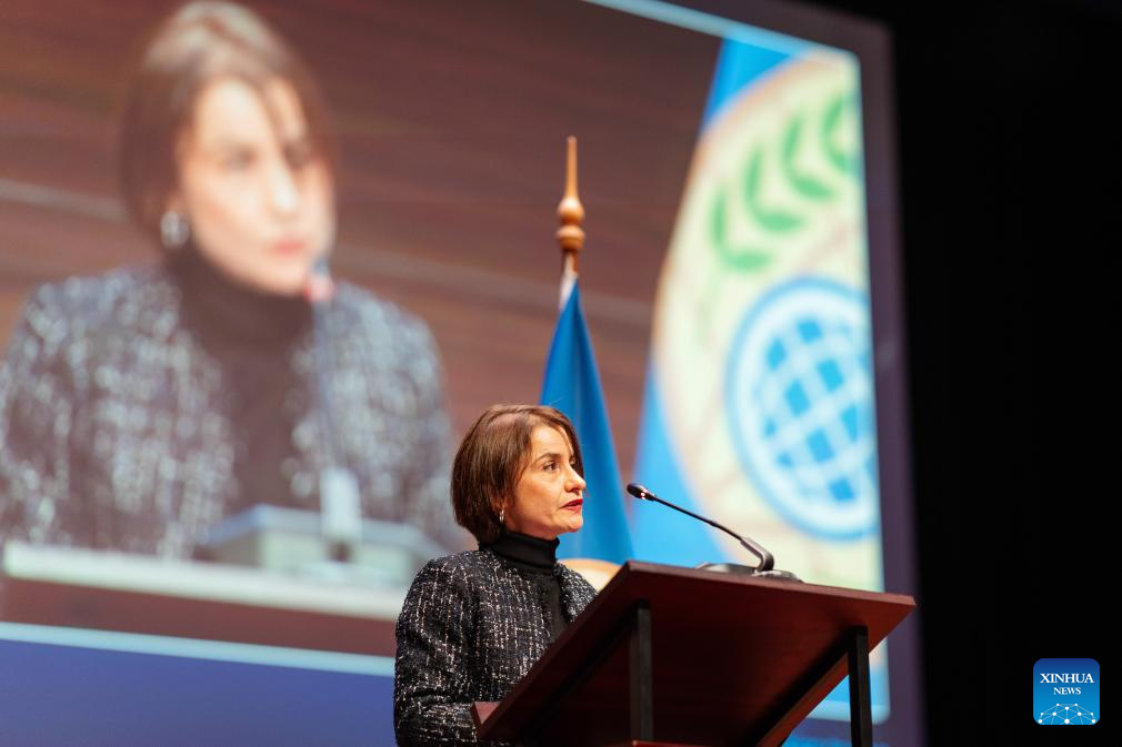 Sabrina Dallafior addresses the 30th Conference of the States Parties after being appointed as the next Director-General of the Organization for the Prohibition of Chemical Weapons (OPCW) by the Conference in The Hague, the Netherlands, Nov. 27, 2025. Swiss diplomat Sabrina Dallafior was appointed the next Director-General of the Organization for the Prohibition of Chemical Weapons (OPCW) by the Conference of the State Parties on Thursday, for a term of four years. (Xinhua/OPCW)